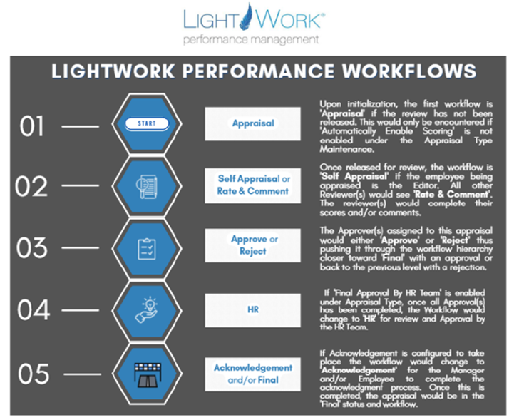 Below is a guide to help understand the workflow of a Performance Appraisal: