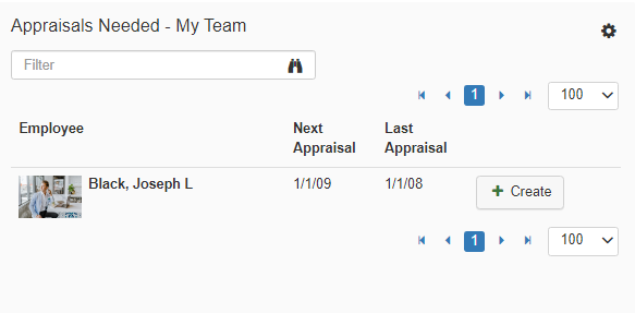 The Appraisals Needed - My Team Widget provides an easy way of creating Appraisals for your direct reports directly from your Dashboard.