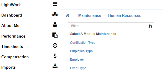 The Certification Type Maintenance allows you to configure the Certification Types available for selection in the 'Certification' card, located within an Employee's profile in 'People'.