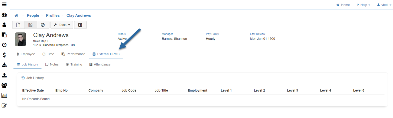 Note: This section is not editable as all the information is from an external source. The External HRMS tab should only be turned on if your system is connected to an external HRMS source. This section itself is display-only and gets updated only through an import, updating information in LightWork from your HRMS source.