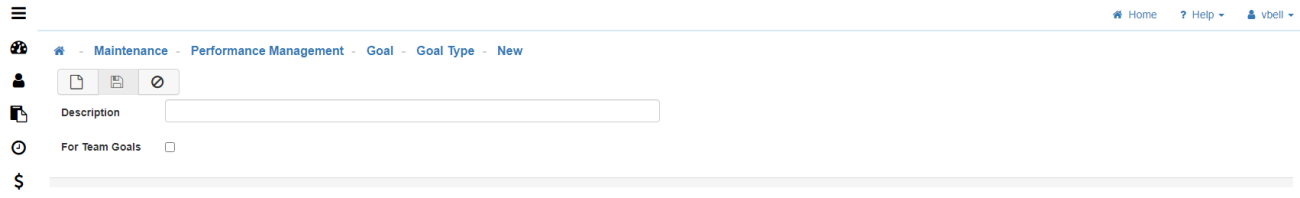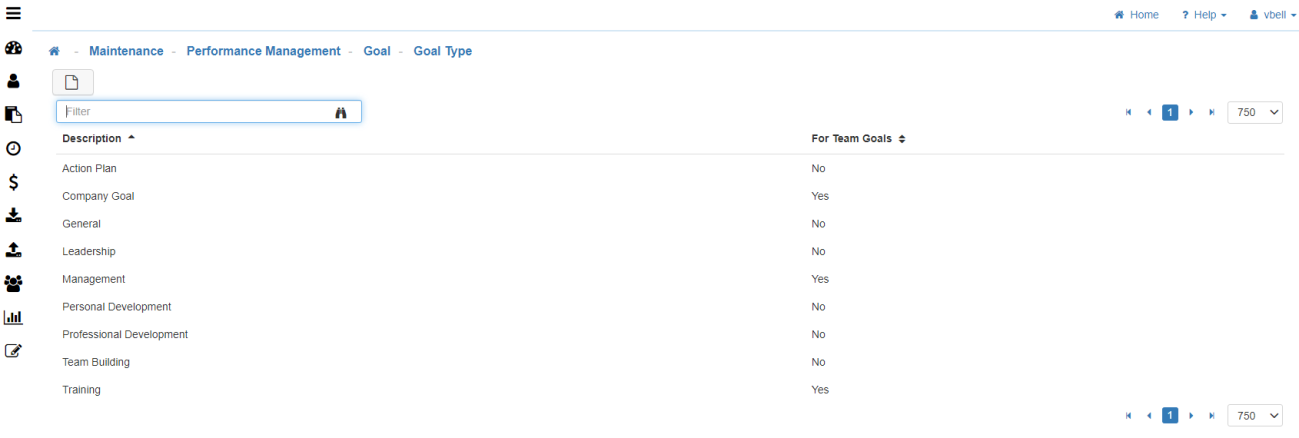 The Goal Type Maintenance allows you to create the Goal Types that will be available within your system. The Goal Type is a way of categorizing a Goal.