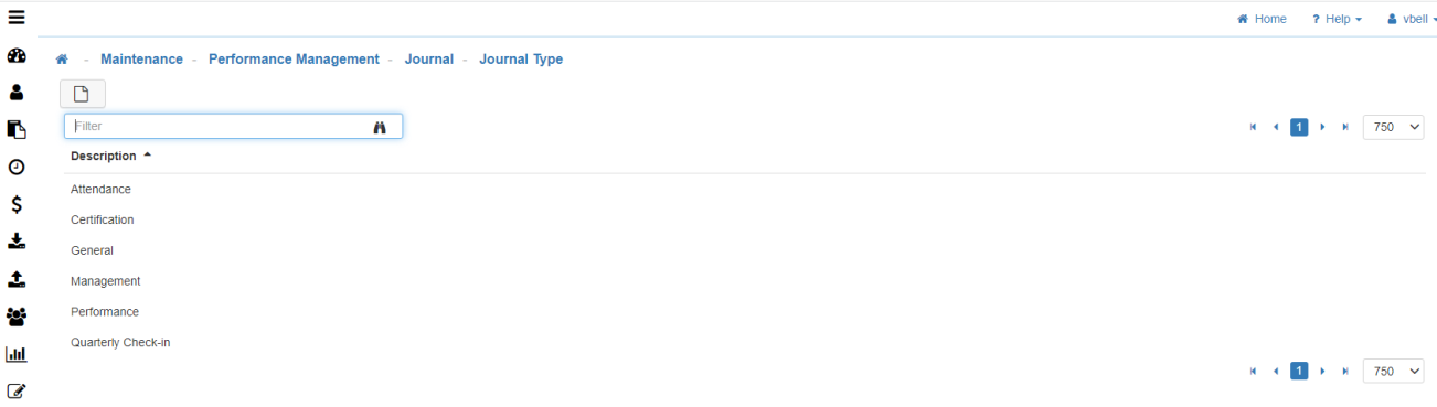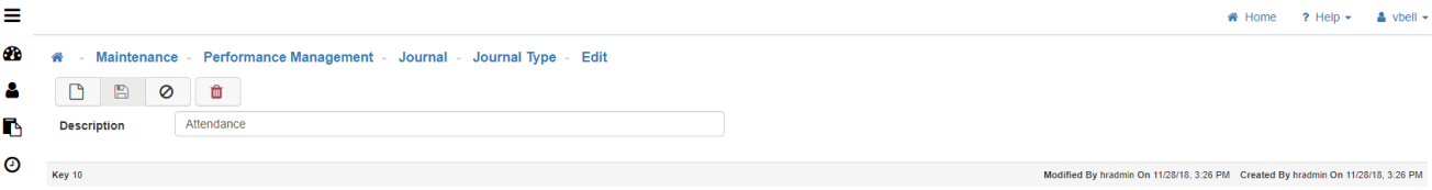 The Journal Type Maintenance is where you will enter the different 'Journal Types' an Employee or Manager will choose from when creating a Journal entry.