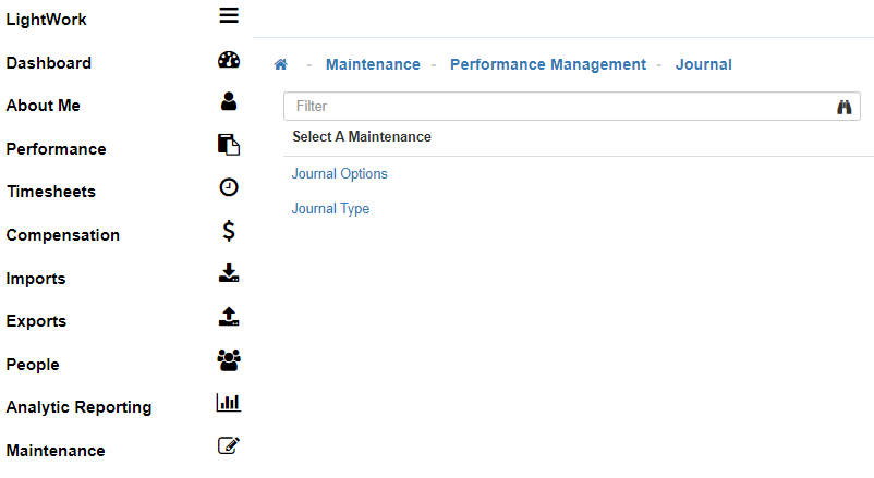 The Journal Maintenance is where you setup how Journals function within your LightWork system. I.e. the available fields when creating a Journal, Privacy Settings, who is allowed to create a Journal, as well as editing and deletion rights.