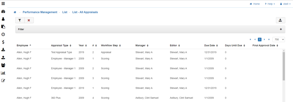 The Appraisal search filter allows the User to search on various parameters to locate an Employee’s Appraisal.