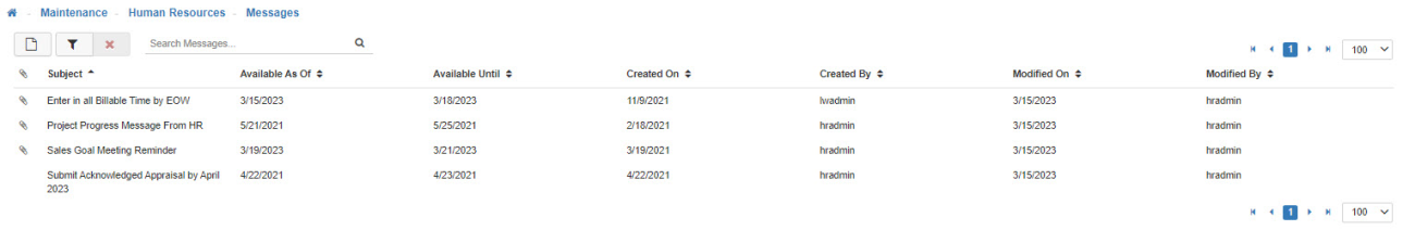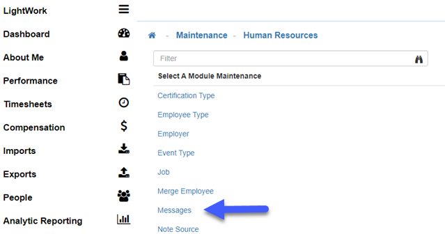 Note: If you see the 'Messages Maintenance' available for selection under the Human Resources Maintenance, you have been granted at least some visibility through Security Access for this Maintenance.