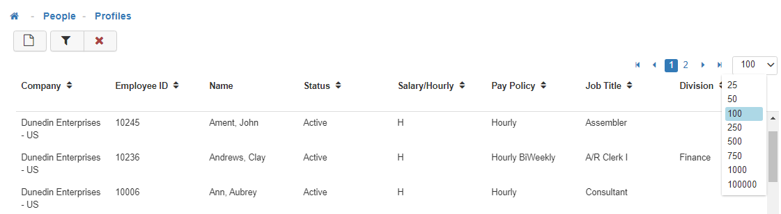 You can also change the number of rows displayed in the list by switching from the default to 25, 50, 100, 250, 500, 750, 1000, or 100000 entries. LightWork can accommodate all of your records and ensure you can customize your viewing experience according to your preferences.