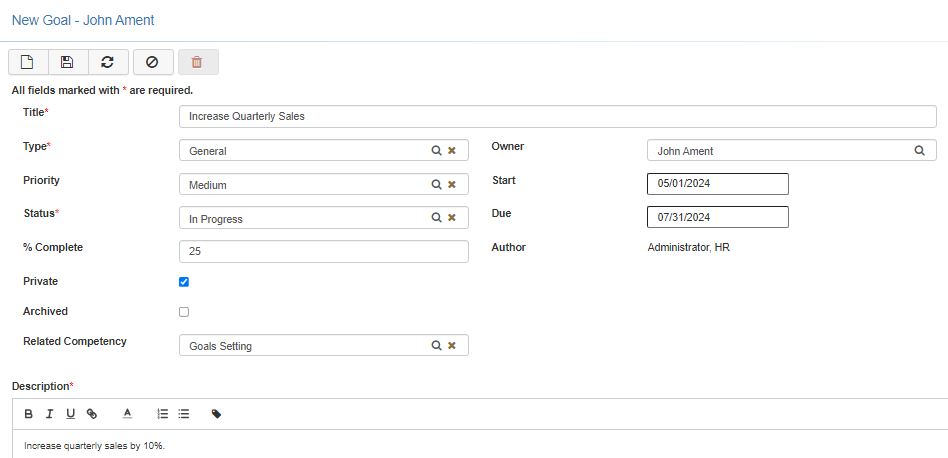 Once you are satisfied with the Goal, click on the 'Save' button. This completes the process for adding a new Goal for an Employee.