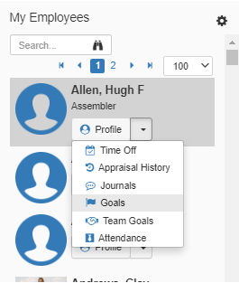 An Employee can print a list of their Team Goals by navigating to My Team Goals, and then selecting the Print Goal Report button.