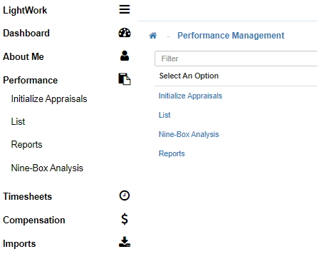 Select Performance from the navigation menu to expand the menu options. -