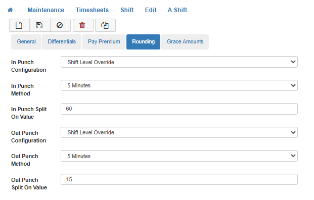 The ‘In Configuration’ for the Shift Rounding is set to ‘Shift Level Override’.