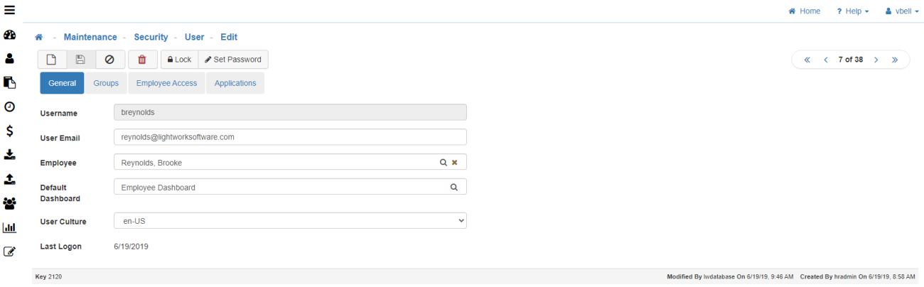 The User Security Maintenance allows you to create or edit a User Login. When you create a User, you are assigning your Employees a login to get into your LightWork system.