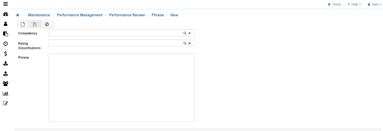 The Phrase Maintenance allows you to create Phrases and tie them to specific Competencies, and those Competencies can then be tied to a specific Classification, to provide for unique Phrases that can be used when commenting/providing feedback for the Employee on their Appraisal. Add any number of Phrases here for Managers to use when doing Employee Appraisals.