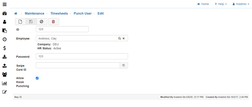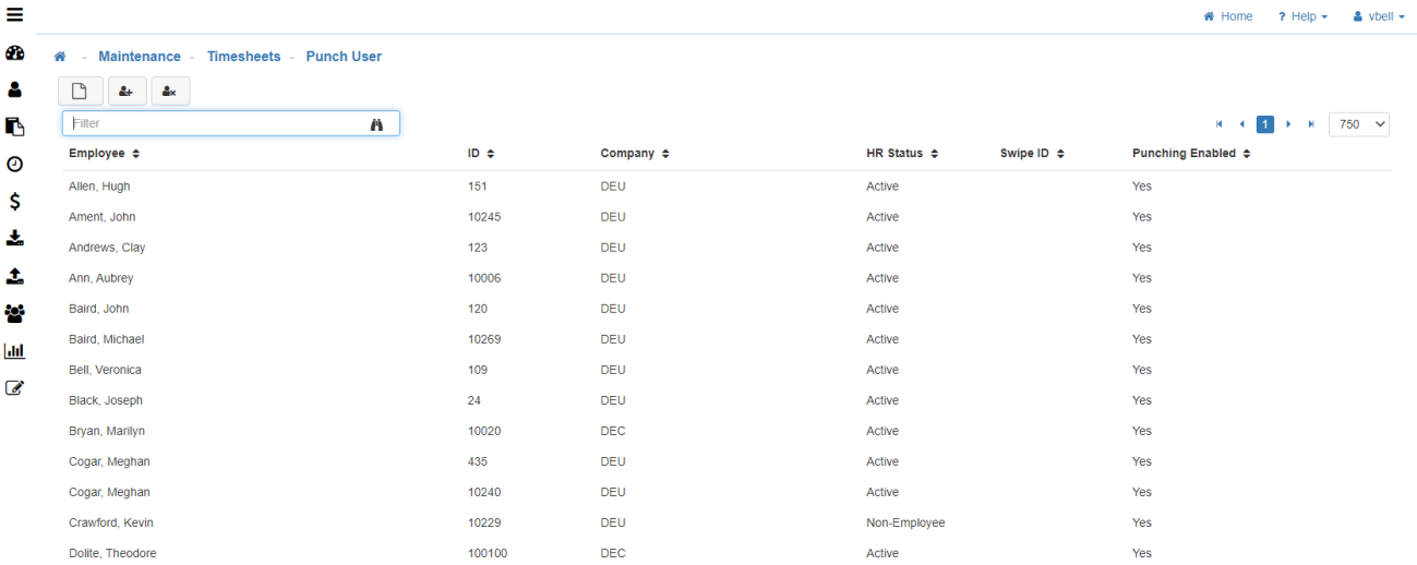 The Punch User Maintenance allows you to Add and Edit Employees who are Punch Users. Punch Users are those who use the Kiosk or a Timeclock.